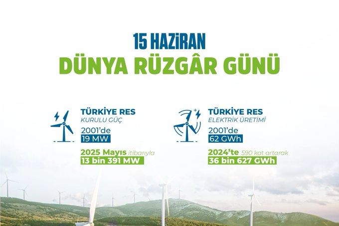 Bugün #DünyaRüzgarGünüAnadolu'nun her noktasında göğe yükselen rüzgar türbinleriyle enerji arz gücümüz artıyor, Türkiye enerjide sürdürülebilir yarınlara ilerleyişini hızla sürdürüyor. ????????2002'de sadece 19 MW olan kurulu gücümüzü 2025 Mayıs itibarıyla 13 bin 391 MW'a… pic.twitter.com/ZMXk7oAWeE