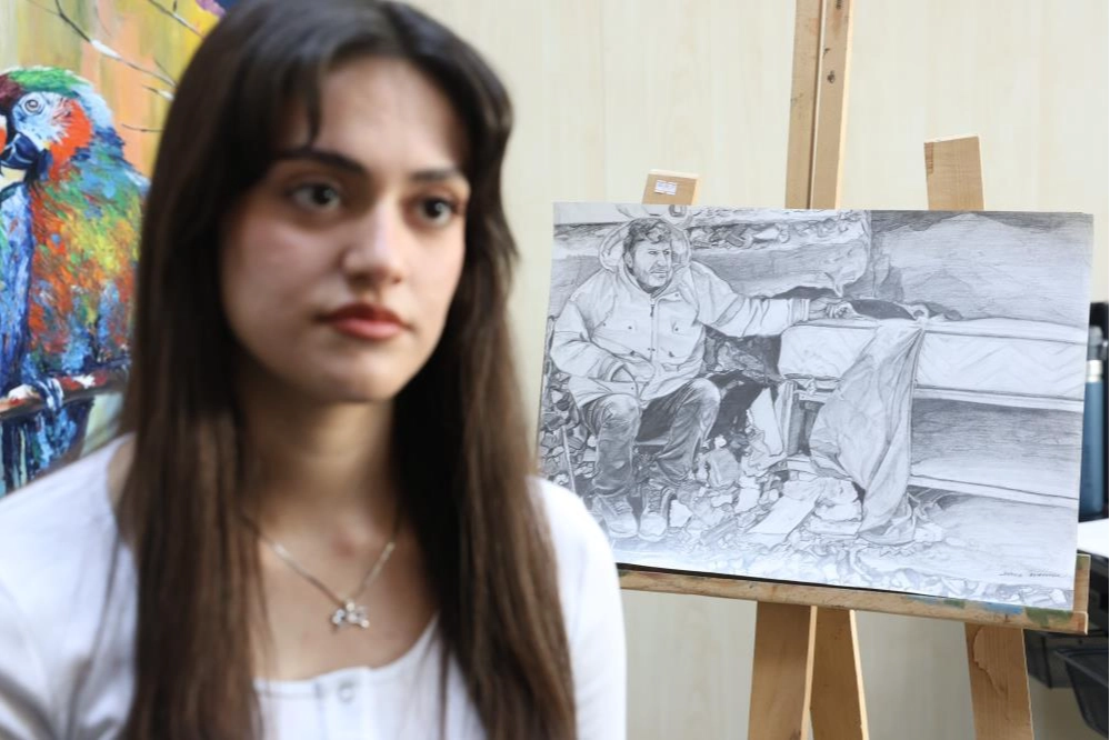 Küçüklüğünden beri resme ilgi duyduğunu ifade eden Zehra Karaman, ailesi ve çevresinin desteğiyle bu alanda kendini geliştirmek istediğini belirterek, "Küçüklüğümden resim yapmaya ilgim var, sürekli resimler çiziyorum. Bu ailem ve çevrem tarafından keşfedildi. Ben de bunu daha çok ilerletmek istedim. Daha sonra Gençlik Merkezinin ücretsiz kurslarına gelmeye karar verdim. Yaklaşık bir yıldır burada öğretmenin Sıdıka Kopar eşliğinde yetenek sınavına hazırlanmaktayım. Gelecekte iyi bir üniversite istediğimden dolayı sınava yönelik çalışmalara yapıyoruz. Burada her tarzda, karakelem, yağlıboya, pastel gibi bir çok çalışma yapmaktayız. Tek bir şeye bağlı kalmıyoruz. Benim en çok dikkatimi çeken ressam, Vincent Van Gogh’tur. Çünkü hikayeleri ve kendine has tarzının olması benim çok dikkatimi çekiyor. İleride ben de kendi tarzımı bulup, onu devam ettirmek istiyorum. 24 Ocak 2020 Elazığ ve 6 Şubat 2023 Kahramanmaraş depremlerini görmüş biri olarak etkilenip, baba Mesut Hançer ile kızı Irmak Leyla Hançer’in acılı fotoğrafını resmetmek istedim. Böyle bir acının bir daha yaşanmamasını umuyoruz. Bu resmi çizerken acı ve üzüntü hissettim. Büyük kayıplar oldu. Bu felaket kimsenin aklından silinemez. Bu yüzden bu resimle de onları daha çok ön plana çıkarmak istedim" dedi.