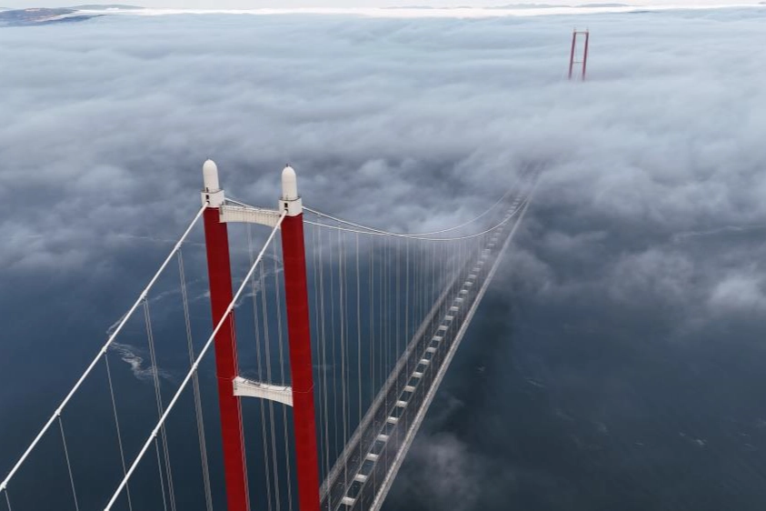 1915 Çanakkale Köprüsü'nün sisler içindeki görüntüsü dron ile görüntülendi. Sis bulutu içindeki 1915 Çanakkale Köprüsü hayran bıraktı.