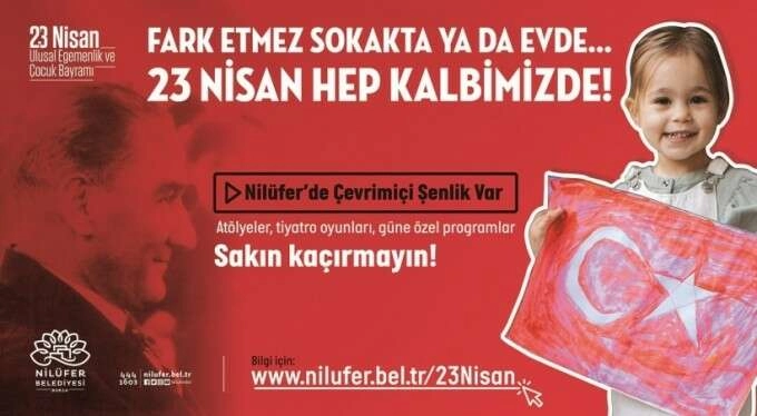 23 Nisan Ulusal Egemenlik ve Çocuk Bayramı sevinci Nilüfer'de bu yıl da önceki yıllarda olduğu gibi coşku içinde yaşanacak. Nilüfer Belediyesi, "Fark etmez sokakta ya da evde" sloganıyla düzenleyeceği çevrimiçi etkinliklerle çocukların 23 Nisan Çocuk Bayramı sevincine ortak olacak.