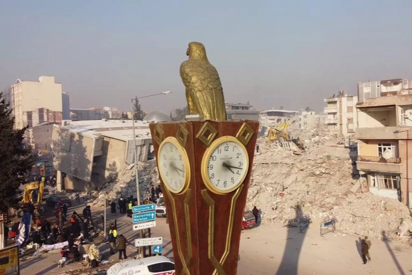 Asrın felaketinde büyük yıkıma uğrayan Adıyaman'da kentin simgesi olan saat kulesi 2 yıldır 04.17'yi gösteriyor.