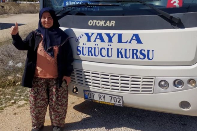 Korkuteli’ne bağlı Yelten Mahallesinden Fatma Ernez (59) yaşı nedeniyle ehliyet alamayacağını söyleyerek kendisiyle iddialaşan arkadaşlarına inat kursa gidip, 1 ay içinde otobüs ehliyetini almaya hak kazandı. Yazılı sınavın ardından girdiği direksiyon sınavını tek seferde geçen Fatma Ernez, “Otobüs ehliyetini aldım. Artık otobüs alıp, servis yapacağım. Yaş sınırı yok, azmettikten sonra her işin hakkından gelinebiliyor. Hayalim olan otobüs kullanmak için ilk olarak otobüs alıp, Yelten mahallesinden Korkuteli’ne servis yapacağım” dedi.