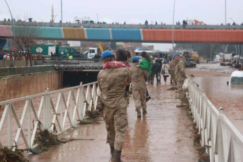 Şanlıurfa’da dün gece bastıran yağmur, sabah saatlerinde sele dönüştü. Birçok mahalleyi etkisi altına alan sel suları araçları sürükledi. Birçok evi su basarken cadde ve sokaklar da adete göle döndü. Botlarla sokakları dolaşıp mahsur kalanları aradılar Süleymaniye Mahallesi'ndeki Karakoyun Deresi de taştı. Taşan sular evlerin etrafını kaplayarak vatandaşların dışarı çıkmasına engel oldu. Yaşanan sel nedeniyle bölgeye giden kurtarma ekipleri, botlar yardımıyla sokakları dolaşıp mahsur kalan vatandaş olup olmadığını kontrol etti. Üç katlı bir binada mahsur kalan vatandaşların belirlenmesi üzerine kurtarma çalışması başlatıldı. Askerler demir köprü kurdu Bot yardımıyla kurtarılamayan vatandaşlar için askerler devreye girdi. Ev ile derenin beton duvarı üzerine kurulan demir köprüden geçirilen vatandaşlar, sağ salim kurtarılarak güvenli bir bölgeye götürüldü. İçişleri Bakanı Süleyman Soylu da sel bölgesini ziyaret etti. Kurtarma çalışmalarını yakından takip eden Bakan Soylu, çalışmalar hakkında bilgi aldı.