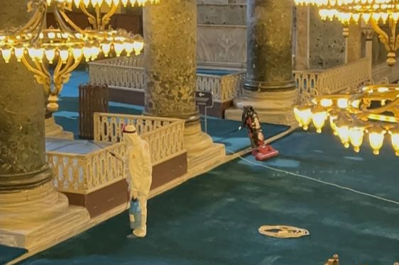 Fatih Belediyesi Çevre Koruma ve Kontrol Müdürlüğü ekipleri tarafından Ayasofya-i Kebir Camii Şerifi’nde Ramazan ayı öncesinde dezenfekte işlemi gerçekleştirildi. Caminin içi gül suyu ile yıkanırken, çalışmaların ilçede bulunan tüm camilerde Ramazan ayı boyunca devam edeceği öğrenildi.