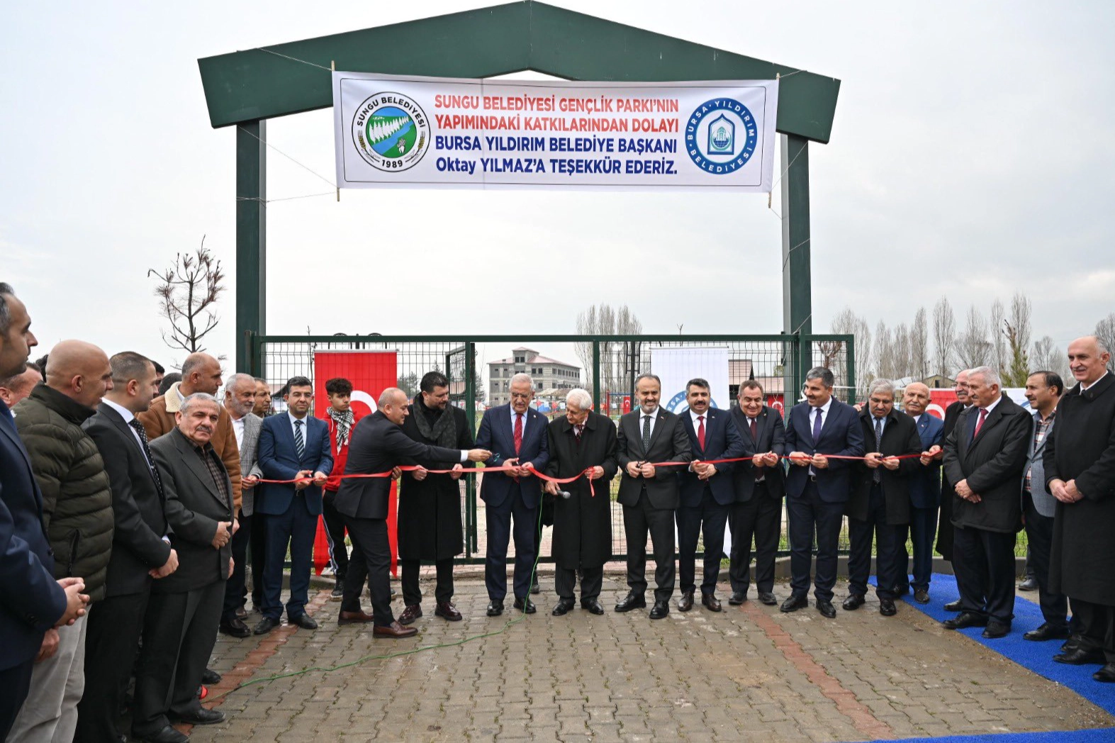 Yıldırım Belediye Başkanı Oktay Yılmaz ile birlikte Muş'un Sungu ilçesindeki parkın açılışına giden Başkan Aktaş, açılış kurdelesini de Başkan Yılmaz ile birlikte kesti.