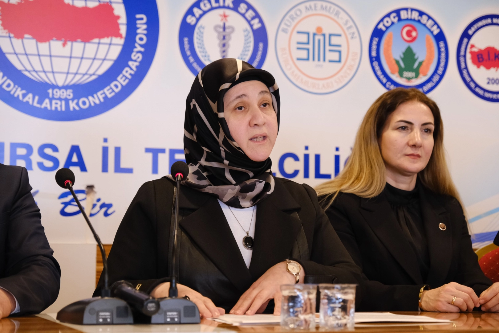 Memur-Sen ve Eğitim Bir-Sen Kadın Komisyonu Bursa Başkanı Nermin Polat, Memur-Sen İl Temsilciliği’nde 28 Şubat sürecine ilişkin bir basın açıklaması düzenledi. Basın açıklamasına; Memur-Sen Bursa İl Temsilcisi ve Eğitim Bir-Sen Bursa 1 Nolu Şube Başkanı Ramazan Acar, Toç-Bir-Sen Bursa 1 Nolu Şube Başkanı Cihan Akyaka, Diyanet-Sen Bursa 1 Nolu Şube Başkanı Zekeriya Turunç, Engelli-Memur-Sen Bursa İl Temsilcisi Hüsni Bayram Kol ve Memur-Sen üyesi sendikaların temsilcileri katıldı.