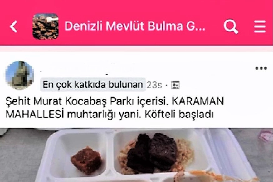 Günlük hayatın sosyal medyadan takip edilir hale gelmesiyle birlikte Denizli'de sıra dışı bir paylaşım grubu kuruldu. Kısa sürede 9 bin 300 üyeye ulaşan "Mevlüt Bulma" grubu, takipçilerine nerede ve hangi menüde mevlütler olduğunu haber veriyor. Gençler, o bölgeden geçerken acıkanlar ve ihtiyaç sahiplerinin takip ettiği grup sayesinde hem bedava yemek yiyenler hem de sevap kazanan cemiyet sahipleri mutlu oluyor.
