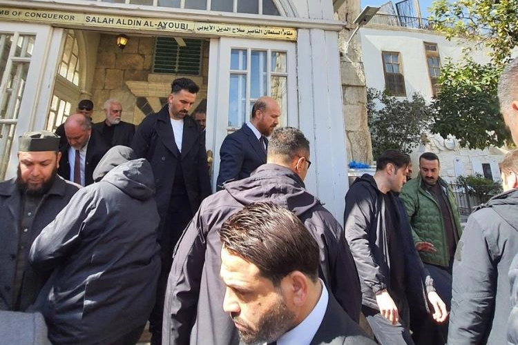 Cumhurbaşkanı Recep Tayyip Erdoğan'ın oğlu Bilal Erdoğan, dün Suriye'nin başkenti Şam'a geldi. Bugün ziyaretlerine başlayan Bilal Erdoğan, ilk olarak Şam Valiliği'ni ziyaret ederek, Şam Valisi Mahir Mervan ile görüştü. Bilal Erdoğan, cuma namazını Emevi Camii'nde kıldı. Erdoğan, cuma namazını Türkiye'nin Şam Büyükelçiliği Geçici Maslahatgüzarı Büyükelçi Burhan Köroğlu, eski Adalet Bakanı ve AK Parti Grup Başkan Vekili Abdulhamit Gül, eski Sanayi ve Teknoloji Bakanı Mustafa Varank, eski Gençlik ve Spor Bakanı Mehmet Kasapoğlu, eski Enerji ve Tabii Kaynaklar Bakanı Fatih Dönmez ile birlikte kıldı.