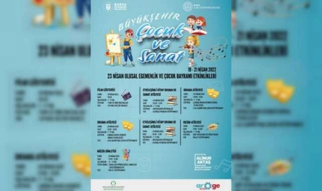 Bursa Büyükşehir Belediyesi, koronavirüs sebebiyle 2 senedir 23 Nisan coşkusunu tam anlamıyla yaşamayan ilkokul öğrencileri için bu sene doyasıya eğlenebilecekleri bir program organize etti. Bursa Büyükşehir Belediyesi ve İl Milli Eğitim Müdürlüğü işbirliğinde hazırlanan ’23 Nisan Ulusal Egemenlik ve Çocuk Bayramı’ temalı programda; çocuk sineması gösterimi, sanat atölyeleri, drama atölyesi, resim atölyesi ve müzik dinletileri gibi faaliyetlerle yüzlerce çocuk aynı ortamda keyifli vakit geçirmek imkanı bulacak. ‘Büyükşehir Çocuk ve Sanat Etkinlikleri’ kapsamında 19-21 Nisan tarihleri arasında yapılacak programlara ilk ve orta öğretim düzeyinde yaklaşık 350 öğrencinin katılması beklenirken, çocukların 23 Nisan’ı bu sene şenlik havasında kutlaması hedefleniyor.