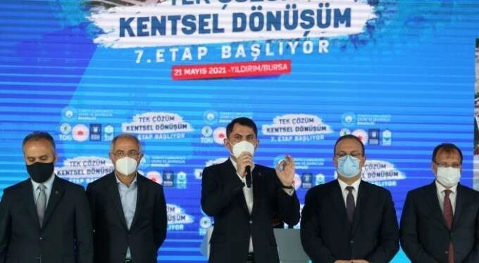 Çevre ve Şehircilik Bakanı Murat Kurum, kentsel dönüşüm ile ilgili çok güzel hedeflerin olduğunu belirterek, "81 ilimizde hemen hemen birçok önemli ilçesinde bu anlamda yapılması gerekenleri bir bir hayata geçirmeye gayret gösteriyoruz. 2012 yılında Cumhurbaşkanımızın başlattığı Türkiye'nin her yerinde kentsel dönüşüm hedefiyle her yıl 300 bin 5 yıl içinde 1 buçuk milyon konutu dönüşümü için çalışmalarımızı başlatıyoruz. Koyduğumuz hedefler doğrultusunda birçok ilde vatandaşımızın bu noktada kangren olmuş birçok konu üzerinde çalışmalarımızı yürütmeye gayret gösteriyoruz. 1 buçuk milyon konut tamamlandı. Sosyal konutlarla birlikte 2 buçuk milyon konutta oturan yaklaşık 10 milyon vatandaşımızın can ve mal güvenliğini teminat altına aldık. Türkiye genelinde yatırım değeri 90 milyon TL olan 300 bin sosyal konut ve kentsel dönüşüm konutunda çalışmaları kararlı şekilde yürütülmektedir" dedi.