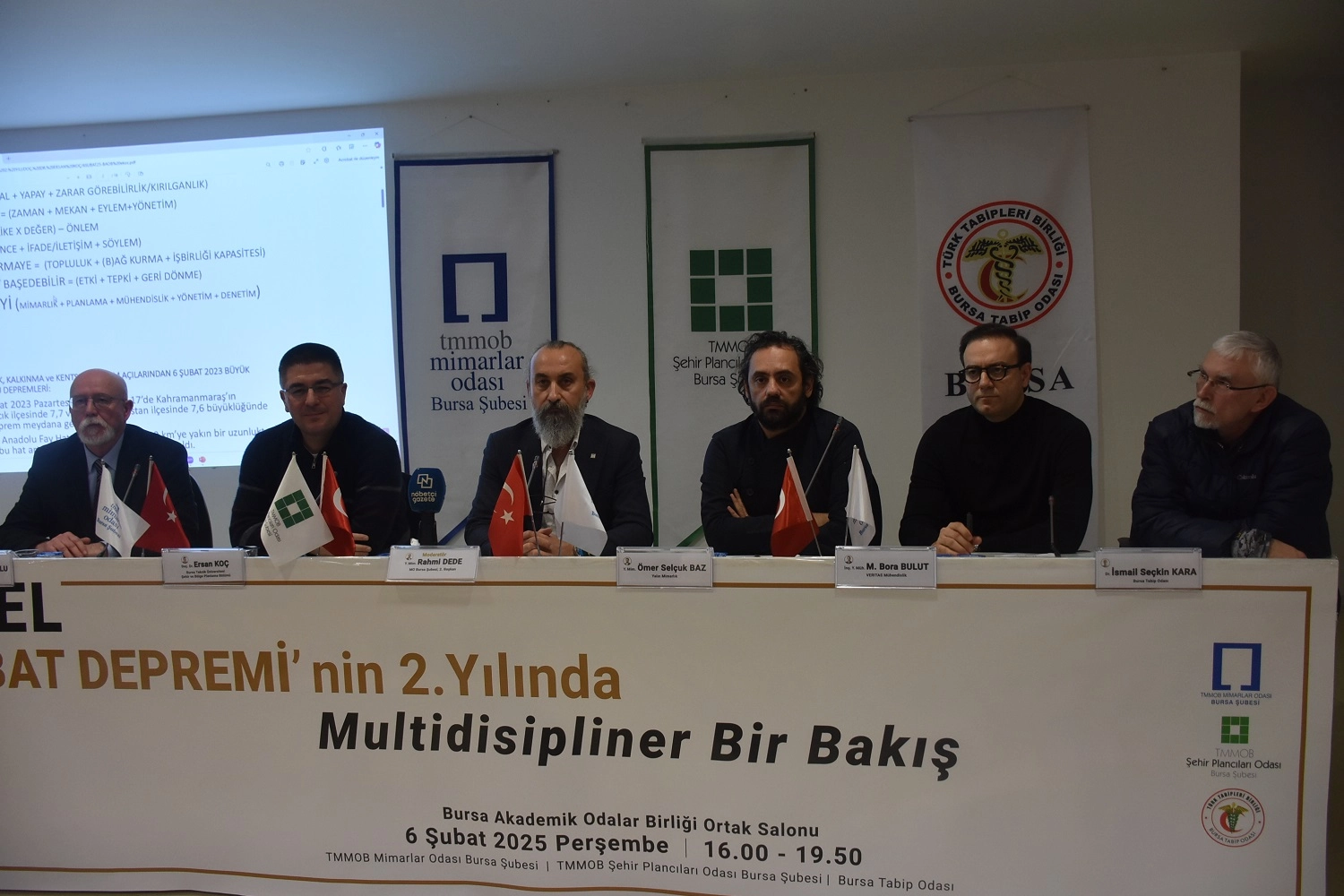 Şehir Plancıları Odası Bursa Şube Başkanı Murat İlkme ise kentlerin afetlere karşı dirençli hale getirilmesi gerektiğini vurgulayarak, “Yaşadığımız depremler ve ardından gelen yıkımlar hala daha yeterli önlemleri alamadığımızı gösteriyor. Bursa’da konut stokunun büyük bir bölümü riskli alanda bulunuyor. Bu durumu görmezden gelmek, felaketi davet etmektir” şeklinde konuştu.