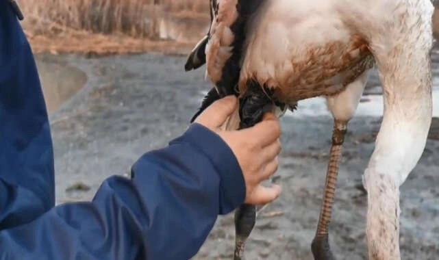 Bursa'da duyarlı bir vatandaş, ayağı kırılan flamingoyu bulup ilk müdahaleyi yaptıktan sonra yetkililere teslim etti.
