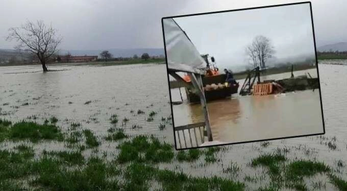 Azgın sular önlerine ne aldıysa alıp götürdü. Bir çiftliği su bastı. Hayvanlar içeride mahsur kaldı. Ekipler kuzuları kepçe yardımıyla kurtararak güvenli bir bölgeye götürdü.