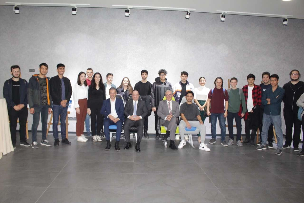 Ödül töreni öncesi yarışmaya katılan öğrencilerin tasarımlarında oluşan sergiyi gezen Jürgen Mill ile Erol Sapçı bir süre öğrencilerle sohbet etti.
