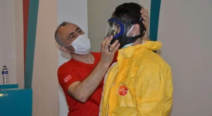 Ayrıca dekontaminasyon ünitesinde sağlık çalışanlarının kullanacağı C ve D tipi koruyucu giysi ile ekipman kullanımı, hastaların yıkanmasında dikkat edilecek hususlar, kullanılacak araç ve gereçler uygulamalı olarak tanıtıldı.
