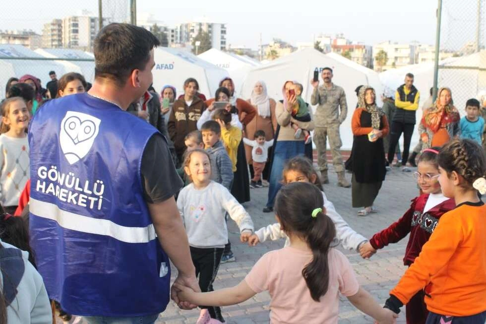 Bir çok bölgede olduğu gibi Tosyalı Kapalı Spor Salonunda kurulan çadır kentte çocuklar Bursa’dan dayanışma için bölgeye gelen Gönüllük Hareketi Derneği üyelerini düzenlediği etkinlik ile onlarca çocuk doyasıya eğleniyor. Depremin etkisinden kurtarılmaya çalışılan çocukların yüzleri etkinliklerle gülümsüyor. Çocuklarını mutlu gören aileler dayanışmanın ve yardımlaşmanın en güzel örneklerini yaşadıklarını kaydederek çocuklarının çok mutlu olduklarını ifade etti. Bursa’dan Osmaniye’ye gelen gönüllü grubundan Ezgi Toksoy Yordam, “İçimiz buruk ama çocukların motivasyonu, eğitimleri, okulu onların ayaklarına getirerek burada çocukların yüzlerini güldürmek için sahadayız” dedi. Minikler kendileri için gelen gönüllü gençlere teşekkür ederek çok eğlendiklerini dile getirdi.