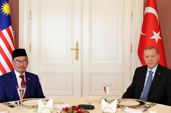 Cumhurbaşkanı Erdoğan, Malezya Başbakanı Enver İbrahim'i kabul etti Cumhurbaşkanı Recep Tayyip Erdoğan, Malezya Başbakanı Enver İbrahim ile Vahdettin Köşkü'nde bir araya geldi. Cumhurbaşkanı Erdoğan'ın Malezya Başbakanı İbrahim'i kabulü, basına kapalı gerçekleşti. Kabulde, Dışişleri Bakanı Hakan Fidan ile MİT Başkanı İbrahim Kalın da yer aldı.