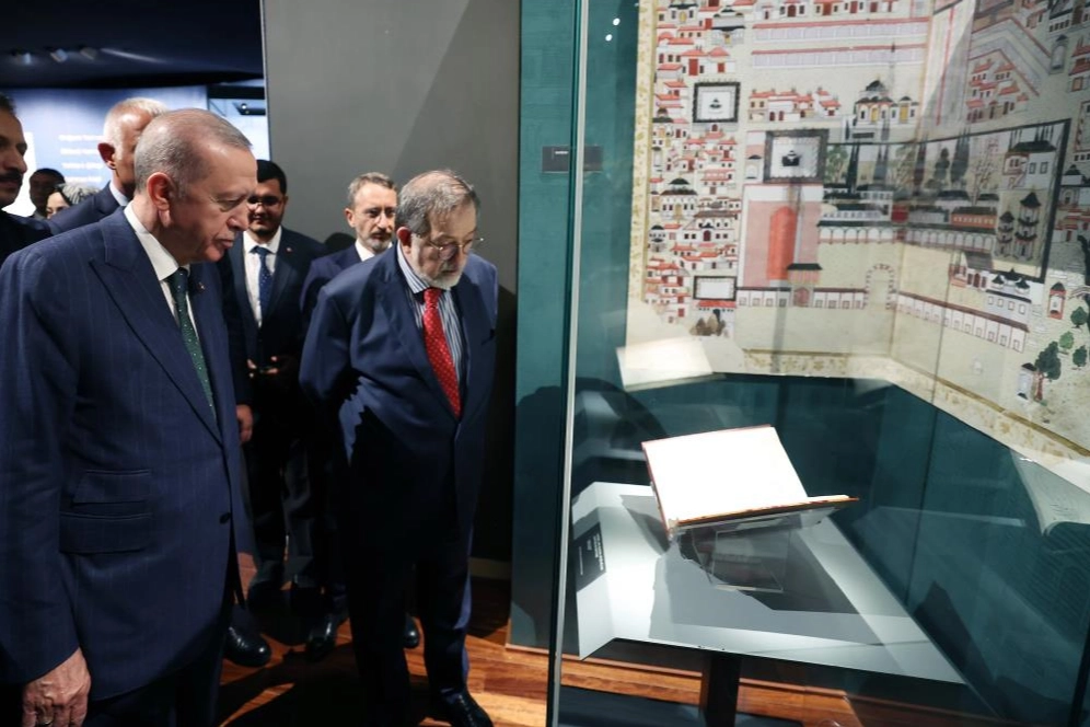 Cumhurbaşkanı Recep Tayyip Erdoğan, İstanbul'un fethinin 571'inci yıl dönümü dolayısıyla Cumhurbaşkanlığı Millet Kütüphanesi'nde açılan Fatih Sultan Mehmet Sergisi'ni ziyaret etti. Sergi hakkında yetkililerden bilgi alan Cumhurbaşkanı Erdoğan'a Kültür ve Turizm Bakanı Mehmet Nuri Ersoy ile Cumhurbaşkanlığı İletişim Başkanı Fahrettin Altun da eşlik etti. Cumhurbaşkanı Erdoğan, daha sonra gençlerle sohbet ederek fotoğraf çektirdi.