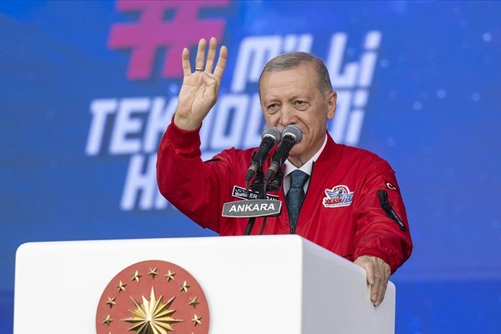 Cumhurbaşkanı Erdoğan, "Artık milli teknoloji hamlesi var, TEKNOFEST kuşağı var, maziden atiye kurdukları köprüyle dünyayı aşıp gözünü uzaya diken azimli, çalışkan gençlerimiz var." dedi.