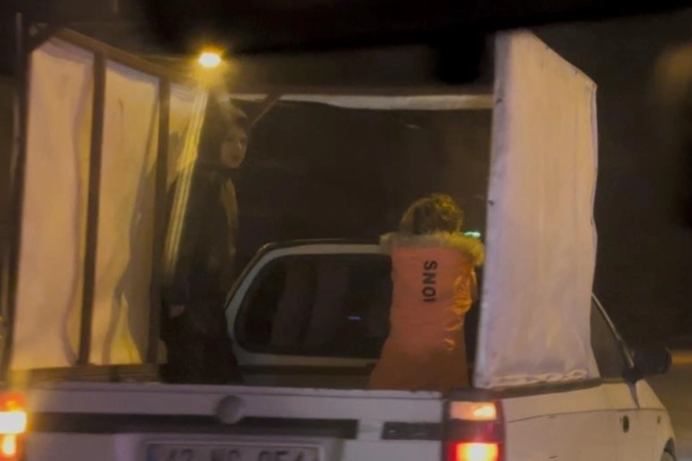 Odunpazarı ilçesi Emek Mahallesi’ndeki Efsaneler Sokak üzerinde gece saatlerinde ilerleyen 42 NG 954 plakalı bir pikap aracın kasasında yolculuk eden 2 çocuk dikkat çekti. Hiçbir güvenlik önlemi olmadan soğuk havaya rağmen kasada yolculuk yapan çocukların hali ‘pes’ dedirtti. Aracın yolcu koltuğu yerine kasada taşınan çocuklar kilometrelerce bu şekilde ilerledi.