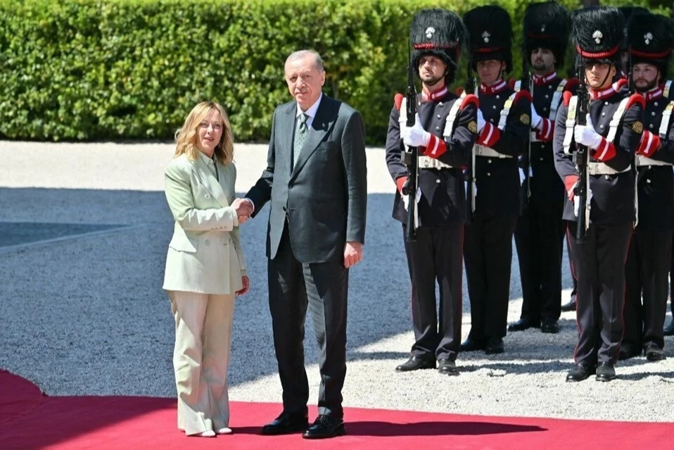 Erdoğan, Roma'daki ilk görüşmesini İtalya Başbakanı Giorgia Meloni ile yaptı. Görüşme sonrası iki liderin katılımıyla heyetler arası görüşme yapıldı.