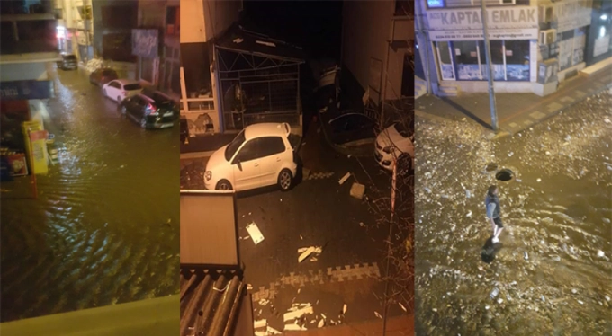 Gemlik ve Kumla'daki fırtına yüzünden denizde dev dalgalar oluştu. Dalgaların büyüklüğü yüzünden deniz taşınca yollar adeta göle döndü.