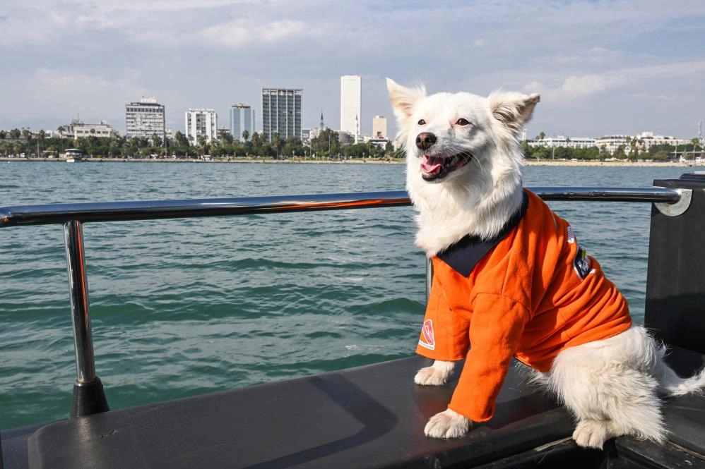 Mersin'de, hayvan barınağından sahiplenilen ve 'Köpük' adı verilen Rus finosu cinsi köpek, her gün ekiplerle birlikte deniz denetimine çıkarak, deniz kirliliğine karşı mücadele ediyor.