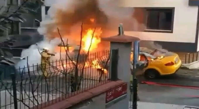Öte yandan alevlerin yükseldiği noktaya yakın olan bir evin camları ise fazla ısıya dayanamayarak patladı. Yaşanan olayda herhangi bir can kaybı yaşanmazken, araçlar kullanılamaz hale geldi. Yaşanan o korku dolu anlar vatandaşın cep telefonu kamerasına yansıdı.
