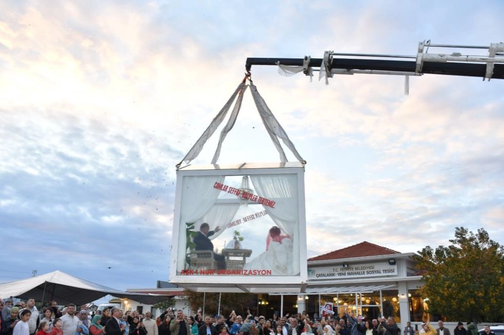 Fethiyeli iş adamı Hüseyin Çetinkaya, eşi Ayla Çetinkaya ile birlikte oğlu Berat Çetinkaya’ya unutulmaz bir düğün organizasyonu yaptı. Hüseyin Çetinkaya gelin ve damat için özel bir cam vitrin tasarladı. Adeta bir cam fanusa benzeyen cam vitrini süsletip üzerine "Camlar şeffaf, kalpler tertemiz" diye yazdırdı. Cam vitrin içerisine gelin ve damat için masa ve sandalye de yerleştirilip, çiçeklerle süslendi. Damat Berat Çetinkaya ile gelin Merve Sarıman bu özel düğün töreniyle evlendi. Fethiye ve Seydikemer ilçelerinin siyaset, esnaf ve ticaret dünyasından yoğun katılımın olduğu düğün töreninde gelin almaya özel yaptırılıp tıra yüklenen cam vitrin ile gidildi. Cam vitrin kız evinde vinçle tırdan indirilirken, gelin Merve Sarıman ve damat Berat Çetinkaya dualarla cam vitrine girdi. Cam vitrin vinçle tekrar tıra alkışlar arasında yüklendi. Gelini alan damat tarafları konvoy eşliğinde Seydikemer ilçesinden Fethiye'ye hareket etti. Tırda gelin ve damadı cam vitrinde görenler bu anı cep telefonlarıyla görüntülemeye çalıştı. Tır üzerinde cam vitrin içinde Çatalarık Mahallesi sosyal tesislerine çift geldiğinde çok sayıda davetli alkış tuttu. Cam vitrin içindeki çift burada da vinç yardımıyla tırdan yine alkışlar arasında indirildi. Fethiyeli iş adamı Hüseyin Çetinkaya düğün organizasyonu ile ilgili olarak yaptığı açıklamada, "Biz camın şeffaflığı gibi kalbimizin şeffaflığını vitrine koyduk. Bu güzelliği oğlumuz ve gelinimize yaşatmak istedik. Böyle bir güzelliğin dünyada benzersiz ve ilk defa olmasını istedik. Çok şükür öyle de oldu. Bize destek olan düğünümüze gelen herkese teşekkür ediyoruz" dedi.