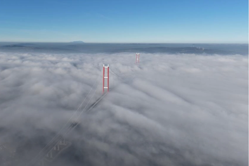 Çanakkale Boğazı yoğun sis sebebiyle transit gemi geçişlerine kapatıldı. 2023 metre ile dünyanın en uzun orta açıklığa sahip asma köprüsü olan 1915 Çanakkale Köprüsü'nün sis bulutu altındaki hali ise dron ile görüntülendi. Sis bulutu geçişi sırasında 1915 Çanakkale Köprüsü görüntüsüyle hayran bıraktı.