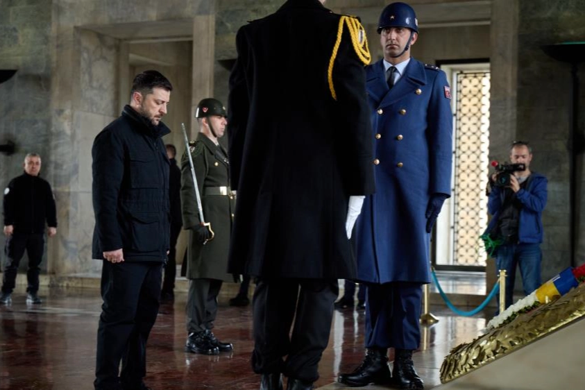 Ukrayna Devlet Başkanı Zelenski, Rusya-Ukrayna Savaşı'na ilişkin güncel gelişmeler başta olmak üzere çeşitli konularda temaslarda bulunmak üzere Ankara'ya geldi. Zelenski, Cumhurbaşkanı Recep Tayyip Erdoğan ile yapacağı ikili görüşme öncesinde Anıtkabir’i ziyaret etti. Anıtkabir ziyaretini sosyal medya hesabı üzerinden paylaşan Zelenski, Anıtkabir’e Aslanlı Yol'dan giriş yaparak beraberindeki heyetle Atatürk’ün mozolesine çelenk bıraktı. Daha sonra beraberindeki heyetle Misak-ı Milli Kulesi’ne geçen Zelenski, burada Anıtkabir Özel Defteri'ni imzaladı.