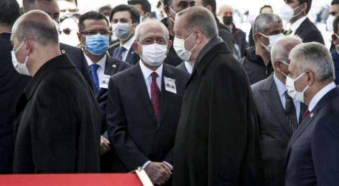 Öte yandan Cumhurbaşkanı Recep Tayyip Erdoğan'ın geldiği sırada CHP Genel Başkanı Kemal Kılıçdaroğlu'na selam vermeden geçmesi dikkatleri çekti.