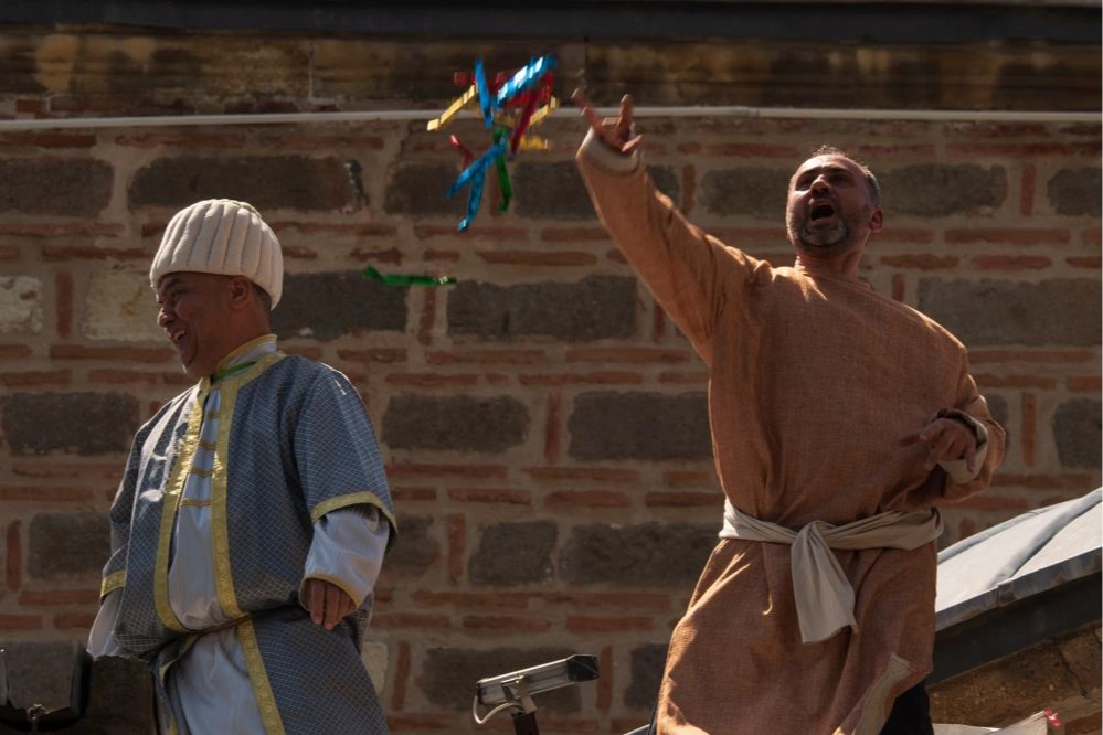 Manisa Büyükşehir Belediyesi Şehir Tiyatrosu oyuncularından seçilen temsili Hafsa Sultan ve nedimeleri ile temsili Merkez Efendi'nin mesir macunu saçılması için berat vermesinin ardından protokol üyeleri temsili Hafsa Sultan ile birlikte ilk mesir macunlarını halka saçmaya başladı. Sultan Camii'nin minare, kubbeleri ve çevredeki binaların balkonlarından 44 farklı noktadan 10 ton mesir macunu halka saçıldı. Her sene olduğu gibi bu yıl da macunlardan kapmaya çalışan yüzlerce kişi ezilme tehlikesi geçirdi, izdiham yaşandı. Her festivalde olduğu gibi şemsiyelerini ve ceketlerini ters açarak mesir macunlarını ağaç veya elektrik direklerinin tepelerinde kapmaya çalışanlar da renkli görüntüler oluşturdu.