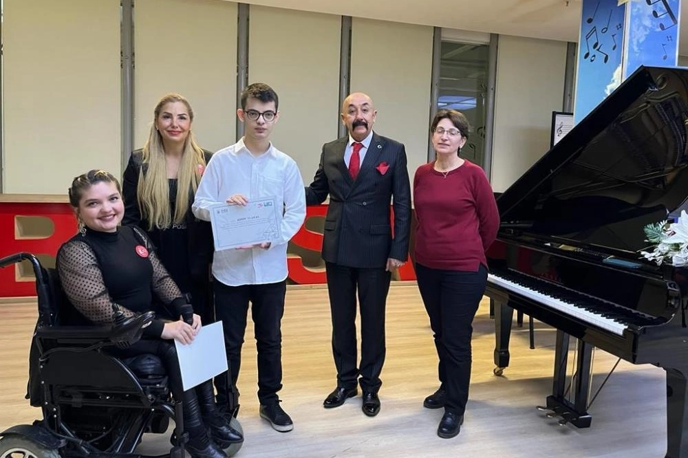Bursa’da hizmetlerden herkesin eşit bir şekilde yararlanabilmesi adına çalışmalarını tüm kesimleri düşünerek yürüten Bursa Büyükşehir Belediyesi, Engelliler Şube Müdürlüğü aracılığıyla özel bireyler için yeni hizmet modelleri ve projeler geliştiriyor. Her yaş ve engel grubuna yönelik kurslar ve programlar düzenlenirken, el sanatları, seramik, resim ve müzik alanlarında verilen eğitimlerden 2020 yılından bu yana 6284 öğrenci faydalandı. Müzik eğitimine katılan 15 öğrenci, ‘Engelsiz Piyano Resitali’ adlı programda hünerlerini sergiledi. Eğitmenler eşliğinde piyano başına geçen özel öğrenciler, yetenekleriyle dinleyenlerden büyük alkış aldı. Özel bireyleri piyano resitalinde yalnız bırakmayan Büyükşehir Belediyesi Başkanvekili Fethi Yıldız, yılda sadece bir günü değil günün her saatini engellilere hizmet için kullandıklarını söyledi. Sanattan spora kadar her alanda engellilerin ve ailelerin yanında olduklarını belirten Yıldız, eğitimlere katılarak hayattan kopmayan ve hünerlerini sergileyen tüm öğrencileri ve ailelerini tebrik etti. Programın sonunda Başkanvekili Fethi Yıldız tarafından eğitimlere katılan öğrencilere sertifikaları takdim edildi.