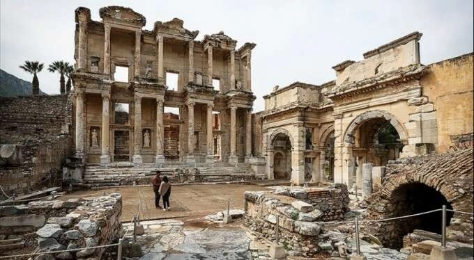 Aralarında üç kilometre olan "aşağı" ve "yukarı" diye adlandırılan iki kapısı bulunan antik kentte milattan sonra 2. yüzyıla tarihlenen "Celcus Kütüphanesi", antik çağın en önemli kütüphaneleri arasında gösteriliyor.
