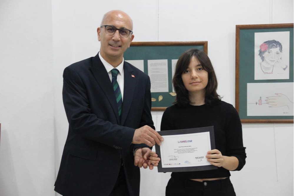 Sergiyi gezerek karikatürleri tek tek izleyen Çınar, başarılı çizgileri için öğrencileri kutladı. Eğitmen Mehmet Kahraman’a katkılarından dolayı teşekkür eden Nilüfer Belediye Başkan Yardımcısı Remzi Çınar, yılın yazarı atölyesini başarıyla tamamlayan öğrencilere de katılım belgelerini verdi.