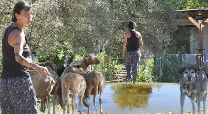 Köpeklerini yanından ayırmayan Özlem Tekin'in çiftliğinin hemen yanında küçükbaş hayvanların olduğu görüldü.