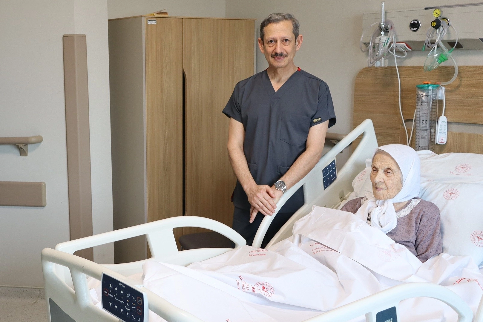 Nefes darlığı, kuru öksürük ve baş dönmesi şikâyetleri ile Bursa Şehir Hastanesi'ne başvuran 104 yaşındaki Embiye Kadıoğlu'nun kalbinde aort kapağı kalınlaşması ve darlığı tespit edildi. Tetkikleri gerçekleştiren Kardiyoloji Uzmanı Prof. Dr. Hakan Erkan, Kadıoğlu'nun ileri yaşına rağmen ameliyat kararı aldı. Hastane bünyesinde başarıyla gerçekleştirilen operasyon sonucu Kadıoğlu sağlığına kavuştu.