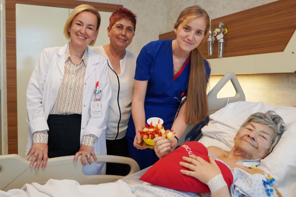İzmir Ekonomi Üniversitesi Medical Point Hastanesi’nde By-Pass ameliyatı olan emekli hemşire Gülten Voit’e (77) Hemşireler Haftası nedeniyle hastanede çalışan meslektaşları sürpriz yaptı. Çok duygulandığını söyleyen Voit, “Ben yetiştirme yurdunda büyüyüp hemşire oldum ve görevimi de bu yurtlarda yaptım. Beni çok mutlu ettiniz” dedi.