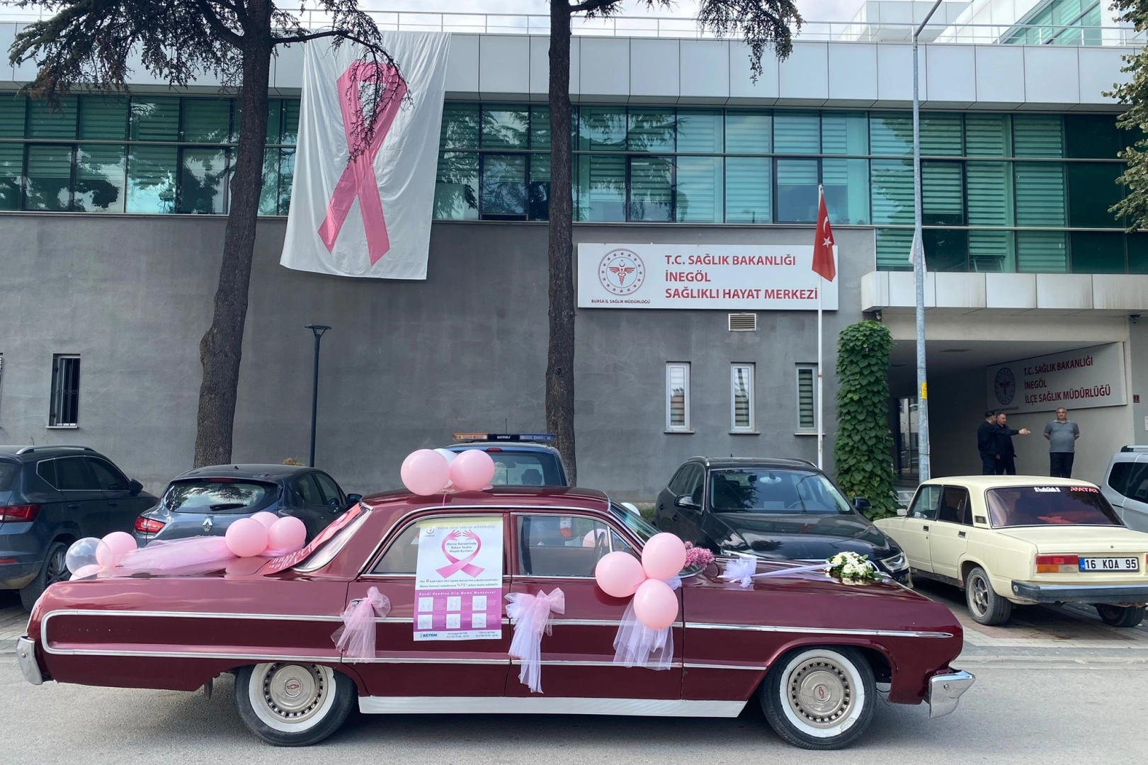 Farkındalık etkinliği kapsamında klasik bir otomobil, pembe kurdele ve balonlarla süslenerek İnegöl sokaklarında gezdirildi. Etkinlikle, vatandaşların meme kanserinde erken teşhisin önemine dikkat çekilmesi hedeflendi.