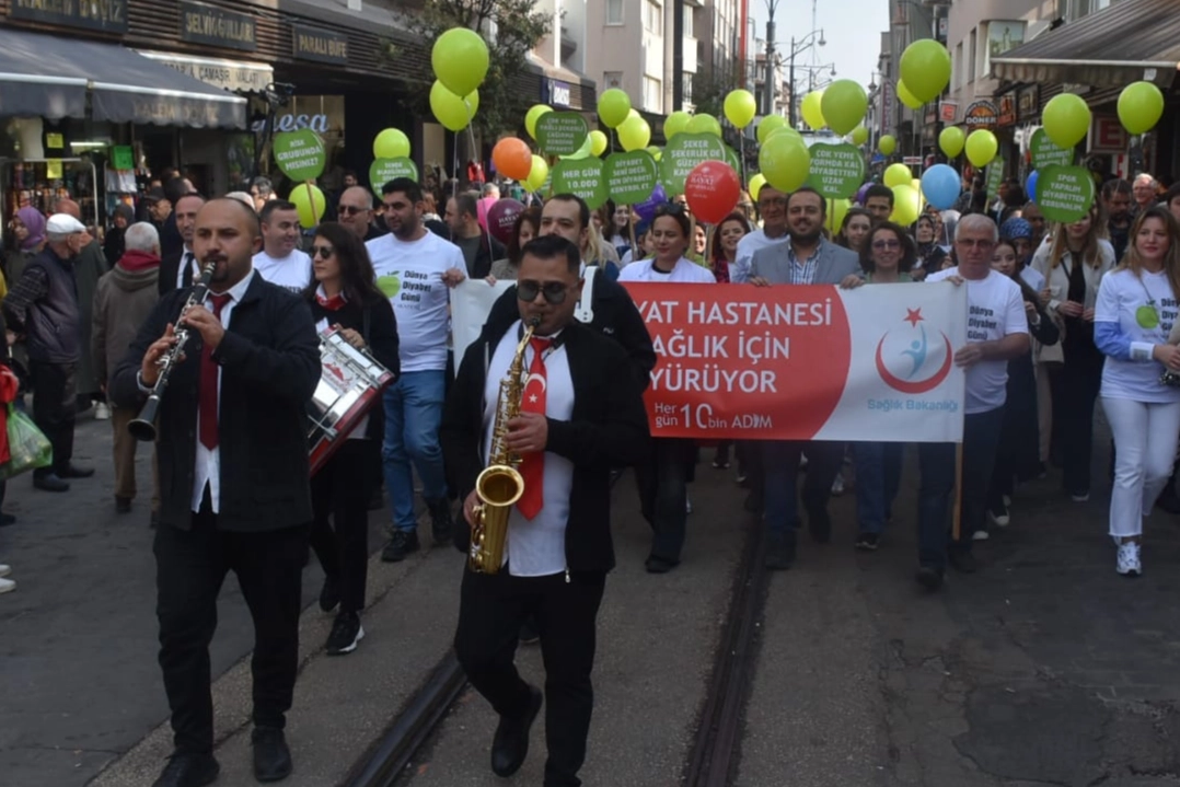 Bursa'da sağlık çalışanları, geleneksel hale getirdikleri diyabet yürüyüşüne vatandaşlar da dahil oldu. Kimi elinde telefonla o anları ölümsüzleştirirken, kimi ise alkışlarıyla sağlıkçılara destek oldu. Gerçekleştirilen yürüyüş, vatandaşların da dikkatini çekerken, Cumhuriyet Caddesi sonunda ise yeşil balonlar gökyüzüyle buluştu.
