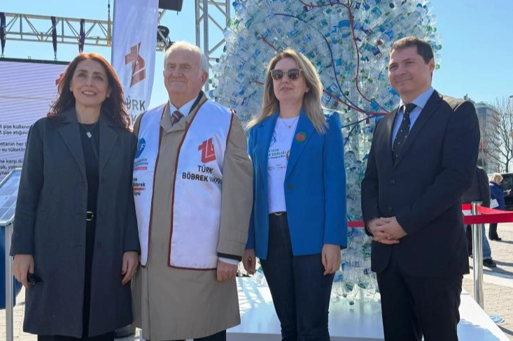 Dünya Böbrek Günü kapsamında, Türk Böbrek Vakfı tarafından 1800 pet şişe kullanılarak hazırlanan 2,5 metre yüksekliğinde dev böbrek maketi, vatandaşların yoğun ilgisiyle karşılandı. Yaklaşık 2,5 metre yüksekliğinde ve 150 kilogram ağırlığındaki maket, plastik tüketiminin doğaya etkisini sembolik bir şekilde gözler önüne serdi. Düzenlenen etkinlikte hem böbrek hastalıklarına dikkat çekildi hem de su kaynaklarının korunmasının önemi vurgulandı. Etkinlikte konuşan Türk Böbrek Vakfı Başkanı Timur Erk, "Türkiye’de yaklaşık 72 bin son dönem kronik böbrek yetmezliği hastası bulunuyor. Bu hastaların yaklaşık 69 bini hemodiyaliz, 3 bini ise periton diyalizi tedavisi ile yaşamını sürdürüyor. Hemodiyaliz tedavisinde kullanılan su miktarı ise konunun çevresel boyutunu ortaya koyuyor. Bir hastanın 4 saatlik tek bir hemodiyaliz seansında en az 200 litre şebeke suyu kullanılıyor. Türkiye genelinde yılda yaklaşık 2-2,5 milyon ton su, bu tedavi sürecinde kullanıldıktan sonra atığa dönüşüyor" dedi. Erk, kronik böbrek yetmezliğinin büyük ölçüde önlenebilir bir hastalık olduğuna dikkat çekerek, "Böbreklerimizi korumak aslında doğal kaynaklarımızı korumaktır. İklim değişikliği ve su kaynaklarının giderek azalması, suyun değerini her zamankinden daha önemli hale getiriyor. Günlük 2-2,5 litre su tüketimi gibi basit alışkanlıklar hem böbrek sağlığımızı koruyabilir hem de sağlık sistemindeki büyük yükün önüne geçebilir" dedi.
