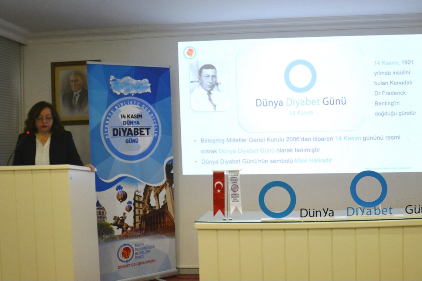 14 Kasım Dünya Diyabet Günü nedeniyle düzenlenen programa, BUÜ Hastanesi ev sahipliği yaptı. Türkiye Endokrinoloji ve Metabolizma Derneği çatısı altında faaliyetlerini sürdüren Diyabet Bilimsel Çalışma Grubu’nun ülke genelinde gerçekleştirdiği “Diyabete Birlikte Dur Diyelim” toplantılarının Bursa ayağı BUÜ Hastanesi’nde yapıldı. Programa Tıp Fakültesi Dekanı Prof. Dr. Funda Coşkun, BUÜ Hastanesi Başhekimi Prof. Dr. Halil Sağlam, akademik ve idari personel ile çok sayıda vatandaş katıldı.