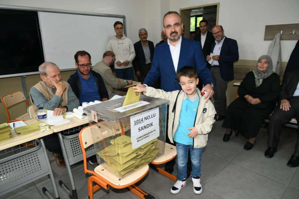 AK Parti Grup Başkanvekili Bülent Turan, babası Sadettin Turan, annesi Sebahat Turan, eşi Kevser Turan ve oğlu Ali Asaf Turan ile birlikte Lapseki’de Şehit Hüseyin Çetin İmam Hatip Ortaoulu’na geldi. Turan, 1014 nolu sandıkta oyunu oğlu Ali Asaf Turan ile birlikte kullandı. Okulda Lapseki Belediye Başkanı Eyüp Yılmaz, AK Parti Çanakkale İl Başkanı Naim Makas, AK Parti Lapseki İlçe Başkanı Namık Ergin ve partililer de bulundu.