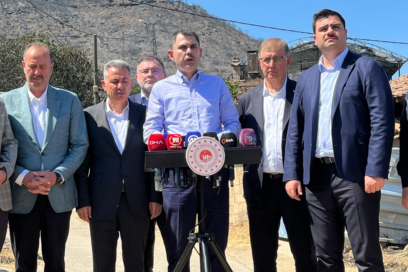 Toplantı sonrası Karaduman Mahallesine gelen Bakan Kurum, burada mahallede incelemelerde bulunup vatandaşla bulunduktan sonra basın açıklaması gerçekleştirdi. Açıklamada konuşan Bakan Kurum, orman yangınında hayatını kaybeden iki vatandaş için başsağlığı dileyerek, "Canı pahasına çalışan tüm orman kahramanlarımızın Allah yardımcısı olsun" dedi. Kurum, Cumhurbaşkanı Recep Tayyip Erdoğan'ın geçmiş olsun dileklerini de İzmir halkına iletti. Bakan Kurum, "Yangınlardan etkilenen vatandaşlarımızın hesaplarına şu ana kadar yaklaşık 16 milyon lira yatırıldı. Kira yardımı, taşınma yardımı ve eşya zararları karşılandı" dedi. Ayrıca AFAD tarafından 30 milyon lira ödenek gönderildiği, ihtiyaç halinde bu rakamın artırılacağı ifade edildi.