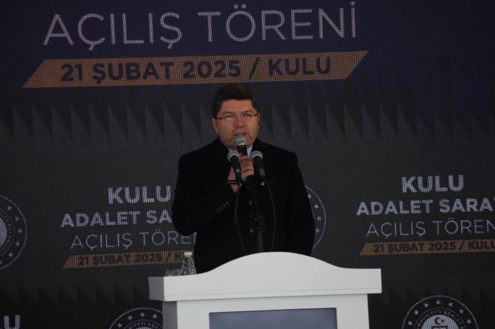 Konya'ya gelen Adalet Bakanı Yılmaz Tunç, Kulu ilçesinde yapımı tamamlanan Kulu Adalet Sarayı'nın açılış programına katıldı Burada konuşan Bakan Tunç, "Bugün 23 yıldan önceki o eski Türkiye geride kaldı ve bugünkü Türkiye daha yüksek standartlı hukuk devleti ilkesinin tahkim edildiği, temel hak ve özgürlüklerinin en geniş anlamıyla yaşanılabildiği bir ülke haline geldi. Bu, Cumhurbaşkanımız Recep Tayyip Erdoğan ve ona güvenen milletimiz sayesinde bu noktaya geldi. Biz milletimize şükran borçluyuz. Bu mücadeleyi yaparken çok engellemelerle karşılaştık. Muhtıralarla karşılaştık, 27 Nisan bildirisi, o gün neredeydi bugünkü konuşanlar? Bugün Türkiye'de hukuk devleti ilkesinin hakim olmadığı yönünde kara propaganda yapmaya çalışanlar 27 Nisan bildirisine karşı ne söylediler? Bu ülkede iktidar partisine karşı bir kapatma davası açıldığında sesleri çıktı mı bunların? Gezi olaylarıyla bu ülkeyi kaos ortamına sürüklemeye çalışanlar o terör paçavralarını, kültür merkezinin o Taksim'de binalara asanlara karşı o sivil toplum kuruluşları, bir çift laf söyleyebildiler mi? 17-25 Aralık'ta, 15 Temmuz hain darbe kalkışmasında ne söyleyebildiler? Bu ülkede demokrasiye sahip çıkma noktasında, millet iradesine sahip çıkma noktasında bir şey söylediler mi? Bugün çıkıp 3 tane hakaret soruşturması nedeniyle hukuk devletinin olmadığını, bu ülkede hukuk güvenliğinin olmadığını söylemek insafsızlıktır. Bu ülkeye, Türkiye Cumhuriyeti Devleti'ne ve bu millete hakarettir" ifadelerini kullandı.