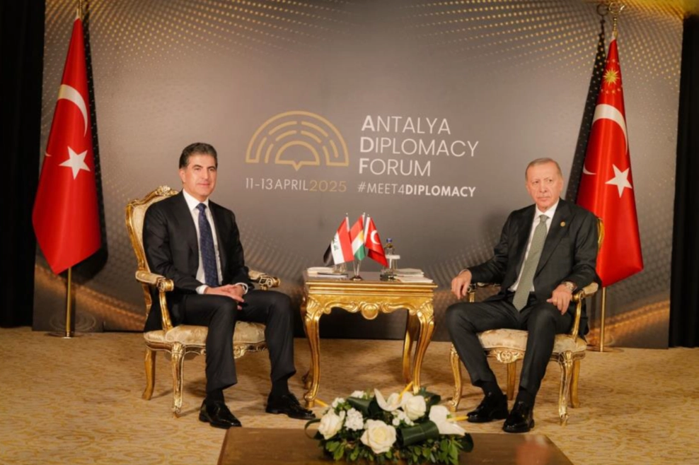 Irak Kürt Bölgesel Yönetimi (IKBY) Başkanı Neçirvan Barzani, 4. Antalya Diplomasi Forumu’nda Cumhurbaşkanı Recep Tayyip Erdoğan ile gerçekleştirdiği görüşmeye ilişkin sosyal medya hesabı üzerinden açıklama yaptı. Görüşmenin "son derece verimli" geçtiğini belirten Barzani, "Türkiye'de barış sürecinin istikrar ve kalıcı barışa giden bir yol olarak yeniden canlandırılmasının önemini yineledim. Bu tarihi fırsatın değerlendirilmesi gerektiğini ve PKK’nin Öcalan’ın çağrısına olumlu yanıt vermesi gerektiğini vurguladım" dedi. Barzani görüşmede ayrıca Cumhurbaşkanı Erdoğan'ın DEM Parti heyetiyle gerçekleştirdiği son görüşmenin diyalog ve barış açısından taşıdığı öneme dikkat çekildiğini söyledi.
