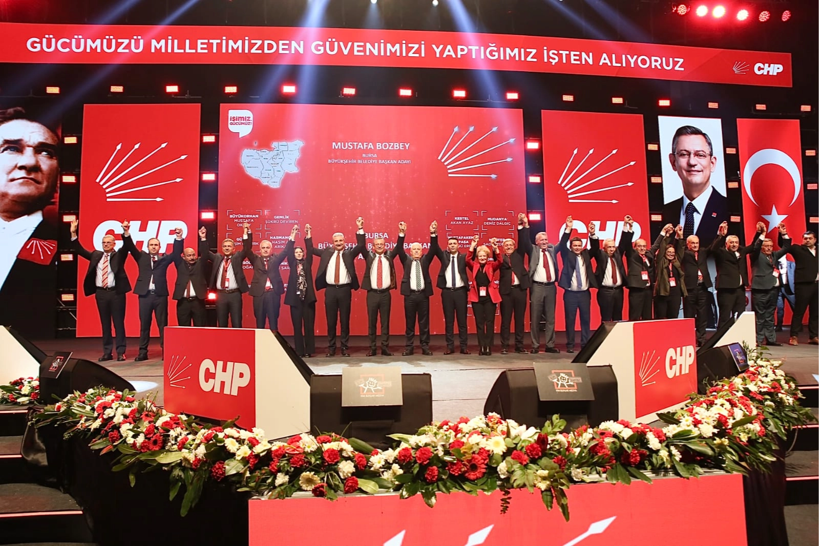 Cumhuriyet Halk Partisi bugün Ankara Spor Salonu'nda aday tanıtım toplantısı düzenledi. Belediye başkan adaylarının tanıtıldığı görkemli toplantıya CHP Bursa İl Başkanı Nihat Yeşiltaş, Bursa Büyükşehir Belediye Başkan Adayı Mustafa Bozbey, İlçe Belediye Başkan Adayları, İl Gençlik Kolları Başkanı Elifnur Yamak, İl Yöneticileri ve İlçe Başkanları katıldı.