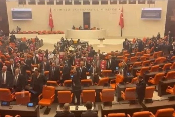 Ekrem İmamoğlu'nun tutuklanmasının ardından protestolar sürüyor. TBMM Genel Kurulu'nda da CHP'li millletvekilleri tarafından İmamoğlu'nun tutuklanması protesto edildi.