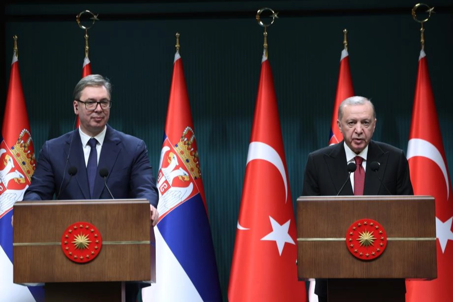 Cumhurbaşkanı Erdoğan, Sırbistan Cumhurbaşkanı Aleksandar Vucic ile Cumhurbaşkanlığı Külliyesinde bir araya geldi. Cumhurbaşkanı Erdoğan, Aleksandar Vucic’i resmi törenle karşıladı ve daha sonra ikili görüşme gerçekleştirdi. Heyetler arası gerçekleştirilen diğer görüşmenin ardından Cumhurbaşkanı Erdoğan ve Aleksandar Vucic ortak basın toplantısı düzenledi.